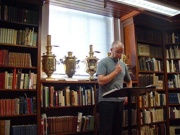 Special thanks to everyone who made this reading tour happen: John Carroll University’s Center for Global Education (for funding our travel), my wife Amy Breau and daughter Adele (for putting up with my absence), Anselm Berrigan and the Poetry Project crew (Stacy, etc.), Matvei Yankelevich, the Russian club at Hunter College, Project Gorod (Sasha Stessin), Michael Wachtel (and Princeton University), Jennifer Tischler (and CREECA at UWisconsin Madison), Duffy White (and the Wesleyan Slavics Department), Cathy Ciepela (and Amherst) (Cathy, thanks for driving us to Cambridge!), Stephanie Sandler and the Davis Center at Harvard, Lev Loseff at Dartmouth, Brian Cook (for brotherhood), Jeff Parker (and Eastern Michigan University), David Young (and Oberlin), John Carroll University, Alik Zholkovsky (and the USC Slavics Department), Marjorie Perloff (thanks!), Lazar Fleishman (Stanford), Jenny Barker, and Becca Black.
