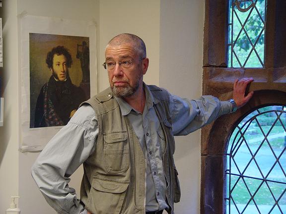 Gandlevsky and Pushkin in Michael Wachtel’s office (Princeton)