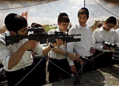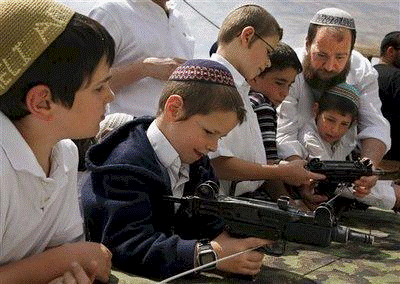 The same comment applies to this photograph of Israeli children playing with guns. I would like to add that the look on the children’s faces is not one of hatred, but more like curiosity.